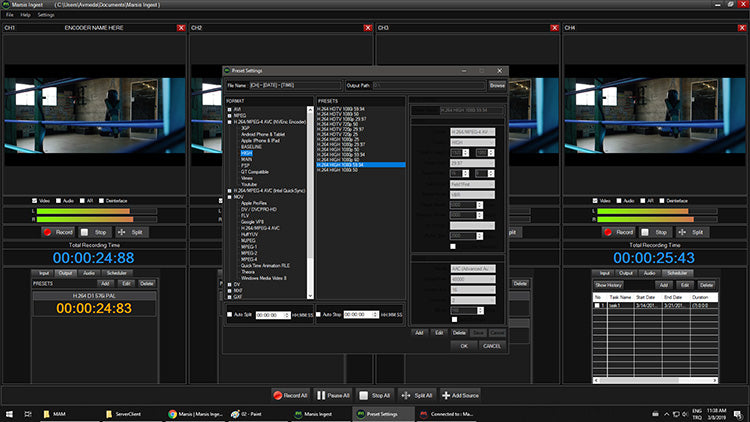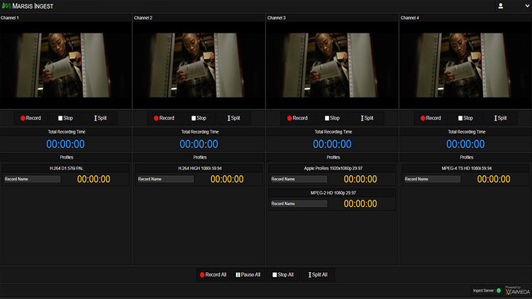Marsis Ingest, HD SDI / SDI veya IP kaynaklarından kayıt yapabilir. Her kanal farklı giriş tipleri için ayrı ayrı yapılandırılabilir. Her kodlayıcı adı, CAM 1, CAM 2, CAM 3 veya Spor Kanalı, Haber Kanalı vb. gibi çok kanallı kayıtlar için atanabilir.